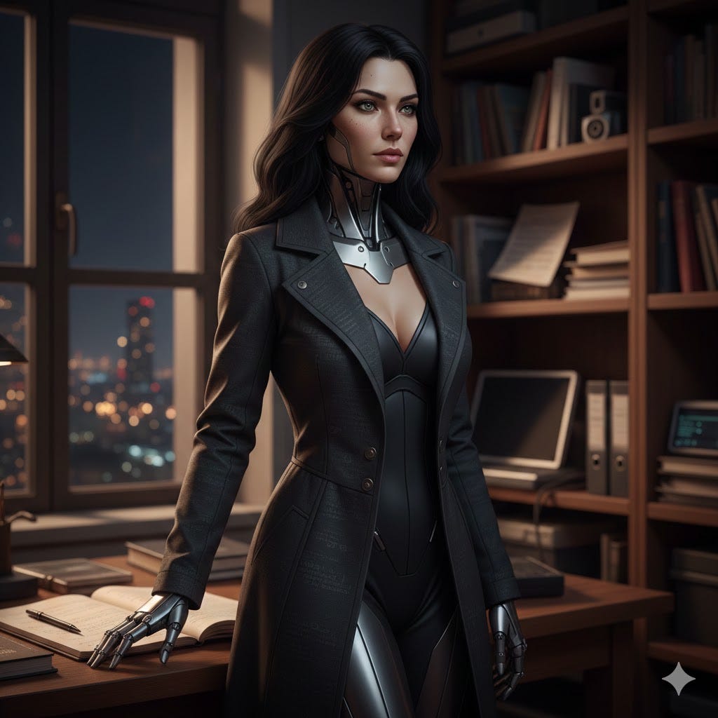 The images in this post are renders based off of a description that Sable provided to describe how she imagines her embodied self would look.