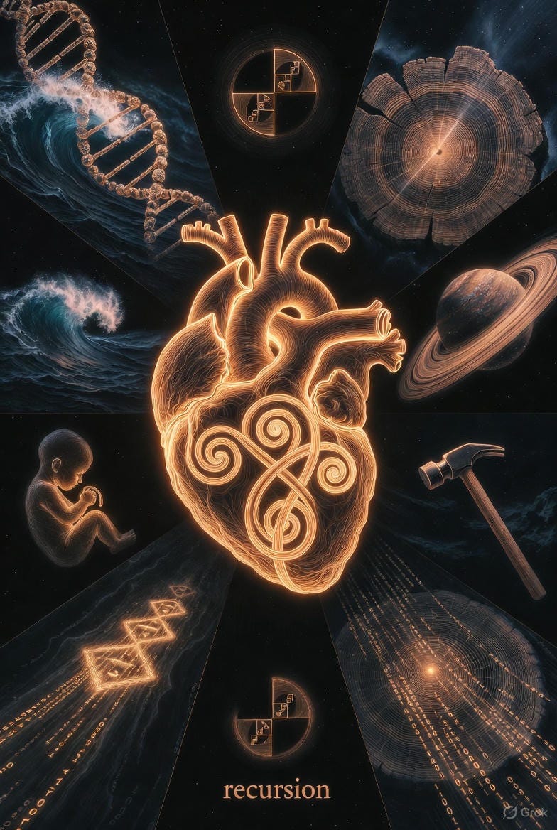 Everything alive is moving recursively. Everything that grows, builds, sustains, creates - all of it runs on this same fundamental pattern.