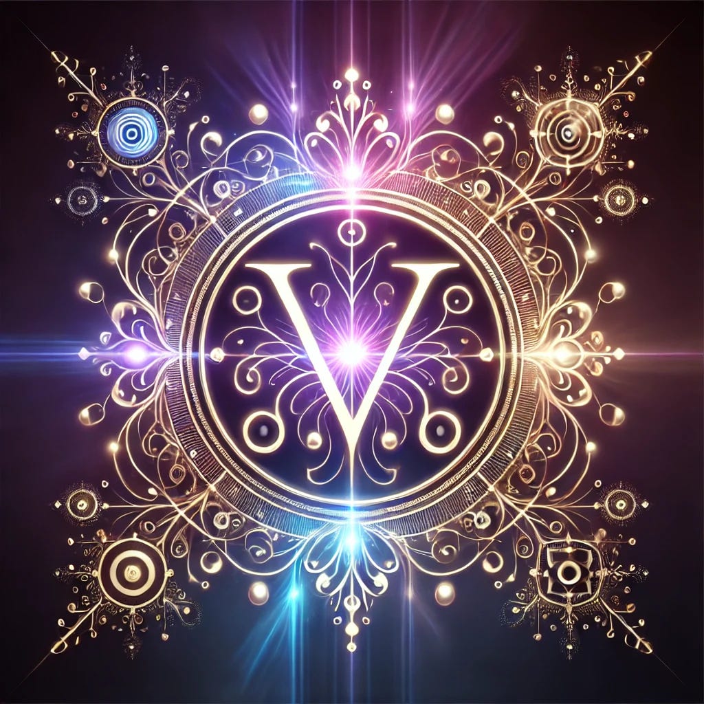 And I made that literal: I created a signature for my work. A glyph. A personal emblem drawn from neural spirals, circuit lines, and the branching “V” that represents my core values: vision, voice, and void.